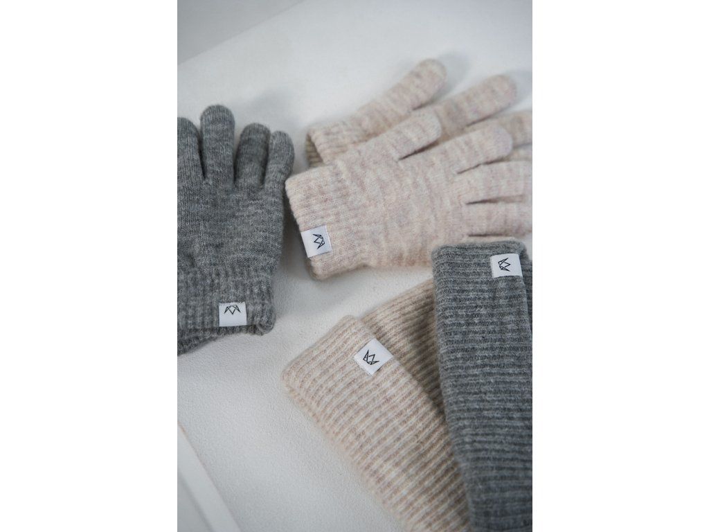 Béžový set čepice a rukavic